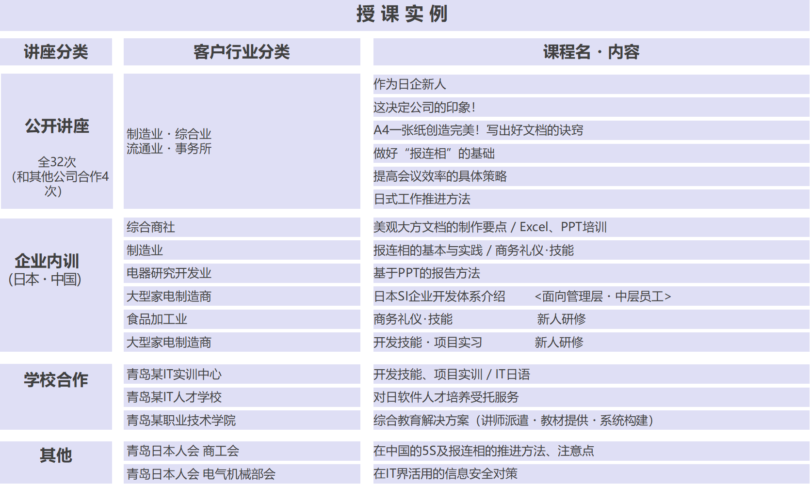 富佳通過(guò)多年的業(yè)務(wù)經(jīng)驗(yàn),我們?cè)跒楸姸嗫蛻籼峁┤瞬排囵B(yǎng)支援服務(wù)的過(guò)程中積累了豐富的咨詢經(jīng)驗(yàn)和技能。提供面向新員工、干部員工的企業(yè)內(nèi)部培訓(xùn),我們擁有充實(shí)的課程庫(kù),可以按照顧客的需要提供最合適的課程。